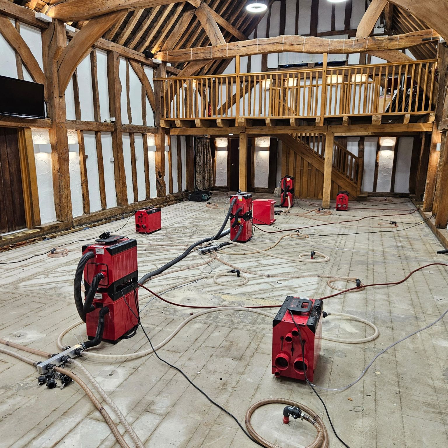 Safety is our top priority; we immediately identify and address any hazards to protect both our team and your property. Once the area is secure, we deploy specialised extraction equipment to efficiently remove standing water, minimising further damage. We then use industrial-grade dehumidifiers and high-powered air movers to thoroughly dry all affected areas, preventing mould growth and structural deterioration.